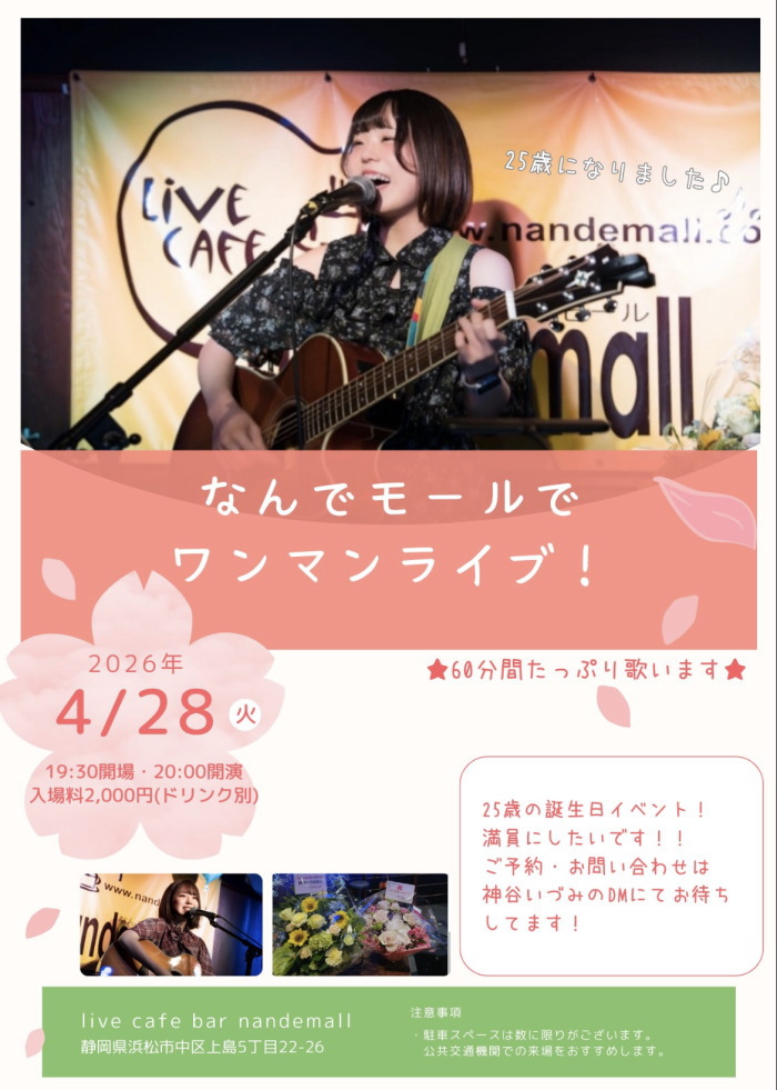 なんでモールライブ なんでモールライブは「ライブセット」をご注文いただいております。(出演者含む) 「ライブセット」とは、ライブ出演&観覧+1ドリンク ¥1000(税込)から |