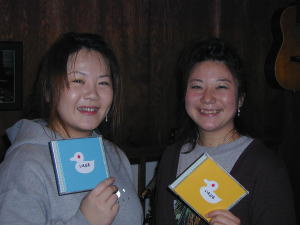 Profile 【G&Vo】 ねぎま 【 Vo 】 ぶんち 路上中心に唄うオンナ二人組。 いつでもどこでも、 「楽しく気持ちよく唄うんじゃ〜!」 と思いながらやってます♪ とにかく付き合いの長いふたりです。 【活動場所】 基本的にJR浜松駅北側周辺に土曜の夜出没☆ お呼びがかかればどこでもやりまっせ〜☆ 県内中部でライブが多いです(苦笑) 地元はどうしたっ!?(笑) 【よく唄ってる歌】 ブルーハーツ、ブームが多し♪ オリジナルも徐々に徐々に・・・(笑) |