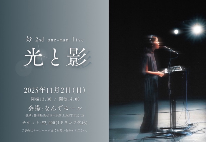 | 11月2日(日) | 2:00pm~ | 好 ワンマンライブ(60分)Vol.2(1D込) 開場13:30 開演14:00 料金¥2000 |