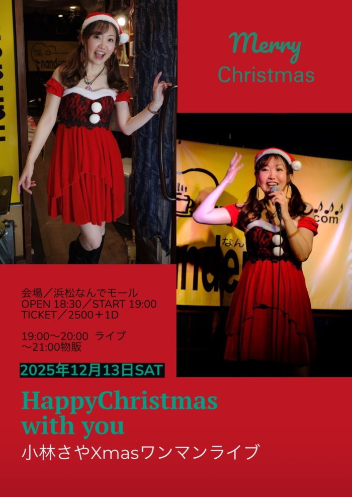 | 12月13日(土) | 7:00pm~ | Saya's Presents 小林さや Xmas ワンマンライブ Happy Christmas With You 開場18:30 開演19:00 料金¥2500(ドリンク別途注文要) |