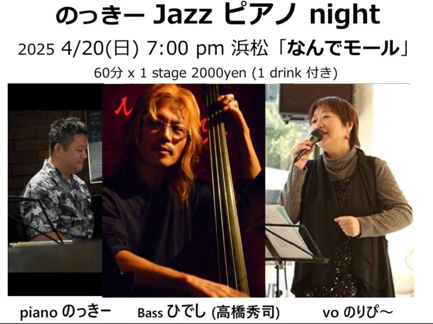 | 4月3日(木) | 8:00pm~ | 歓迎!飛入りライヴ | 出演者募集!出演受付は20:20まで! 受付終了時間前でも定員になり次第、受付終了です |